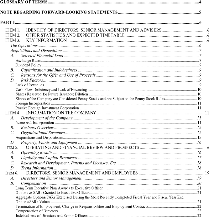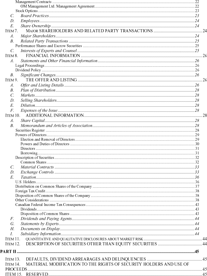 TABLE OF CONTENTS