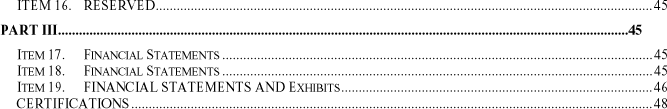 Except for statements of historical fact, certain information contained in this Annual Report constitutes "forward-looking statements."  Such forward-looking statements involve known and unknown risks, uncertainties and other factors which may cause our actual results or achievements to be materially different from any future results or achievements expressed or implied by such forward-looking statements. Any statements that express or involve discussions with respect to predictions, expectations, beliefs, plans, projections, objectives, assumptions or future events or performance (often, but not always, using words or phrases such as "expects" or "does not expect", "is expected", "anticipates" or "does not anticipate", "plans", "estimates" or "intends", or stating that certain actions, events or results "may", "could", "would", "might" or "will" be taken, occur or be achieved) are not statements of historical fact and may be "forward-looking statements."  Such statements are included, among other places, in this document under the headings "Key Information", "Information on the Company" and "Operating and Financial Review and Prospects."