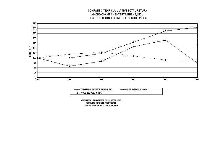 THIS PROXY STATEMENT IS ACCOMPANIED BY CHAMPPS’ ANNUAL REPORT TO STOCKHOLDERS FOR FISCAL YEAR 2003. ADDITIONAL INFORMATION IS CONTAINED IN CHAMPPS’ ANNUAL REPORT ON FORM 10-K FOR THE FISCAL YEAR ENDED JUNE 29, 2003, INCLUDING THE FINANCIAL STATEMENTS AND SCHEDULES THERETO. CHAMPPS WILL FURNISH WITHOUT CHARGE TO ANY STOCKHOLDER A COPY OF ITS ANNUAL REPORT ON FORM 10-K UPON WRITTEN REQUEST TO: INVESTOR RELATIONS, CHAMPPS ENTERTAINMENT, INC., 10375 PARK MEADOWS DRIVE, SUITE 560, LITTLETON, CO 80124.