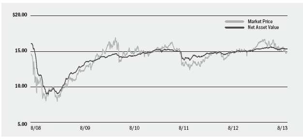 For the 12-month period ended August 31, 2013, the Fund returned 4.82% based on market price and 8.52% based on net asset value (“NAV”). For the same period, the closed-end Lipper Loan Participation Funds category posted an average return of 6.05% based on market price and 9.92% based on NAV. All returns reflect reinvestment of dividends. The Fund’s discount to NAV, which widened during the period, accounts for the difference between performance based on price and performance based on NAV. The following discussion relates to performance based on NAV.