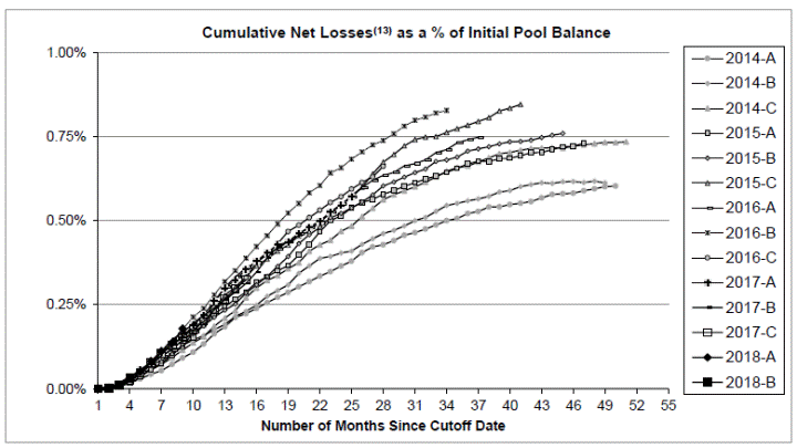 Cumulative Net Loss Information.  The graph below shows cumulative net loss information for Ford Credit’s prior securitized pools of retail installment sale contracts for all transactions issued since 2014.
