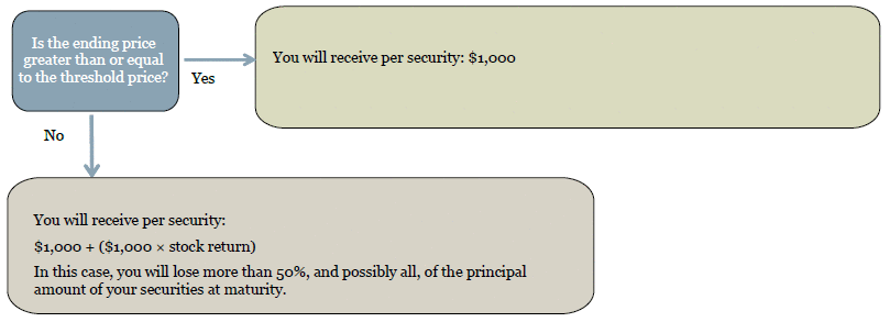 Since the hypothetical ending price is less than the hypothetical starting price but greater than the hypothetical threshold price, you would be repaid the principal amount of your securities at maturity.