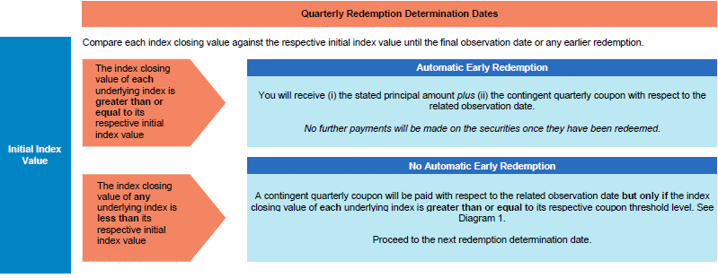 The securities will not be redeemed early on any early redemption date if the index closing value of any underlying index is below the respective initial index value for such underlying index on the related redemption determination date.