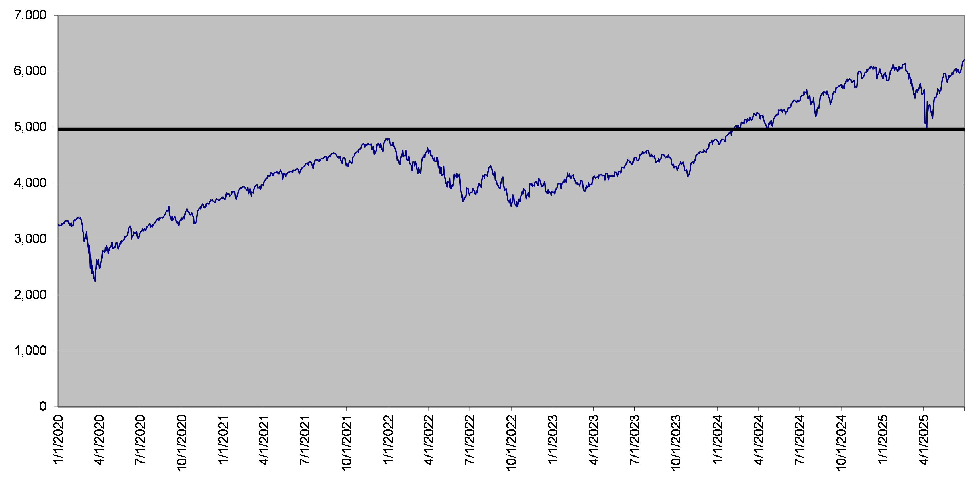 The closing level of the underlier on June 30, 2025 was 6,204.95. The following graph sets forth the daily closing levels of the underlier for the period noted below. We obtained the historical information presented in this document from Bloomberg Financial Markets, without independent verification. The underlier has at times experienced periods of high volatility. You should not take the historical closing levels of the underlier as an indication of its future performance, and no assurance can be given as to the closing level of the underlier at any time.