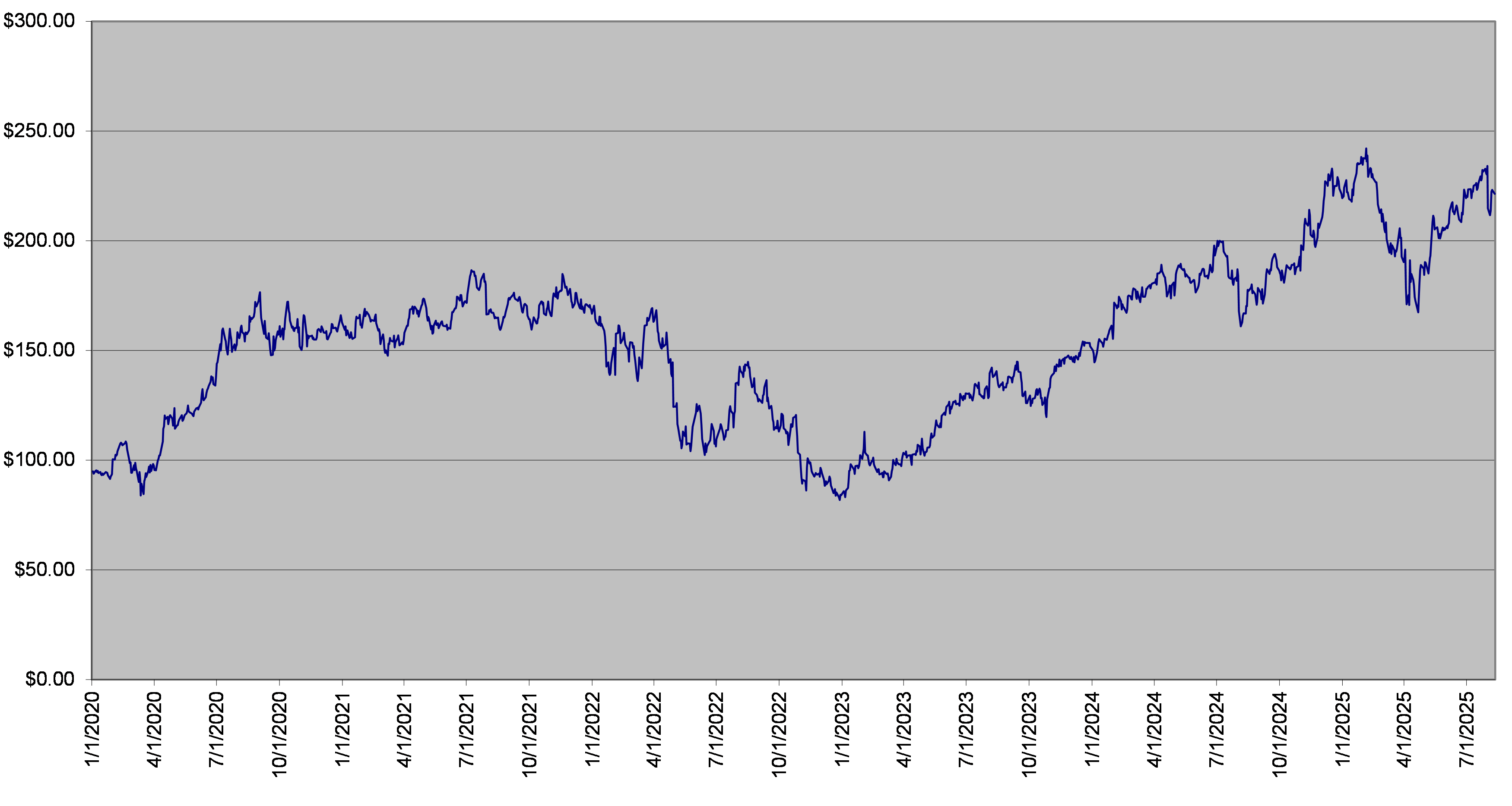 The following graph sets forth the daily closing prices of the AMZN Stock for the period from January 1, 2020 through August 11, 2025. The closing price of the AMZN Stock on August 11, 2025 was $221.30. We obtained the information in the graph below from Bloomberg Financial Markets without independent verification. The historical closing prices of the AMZN Stock may have been adjusted for stock splits and other corporate events. The historical performance of the AMZN Stock should not be taken as an indication of its future performance, and no assurance can be given as to the closing price of the AMZN Stock at any time, including on the calculation days.
