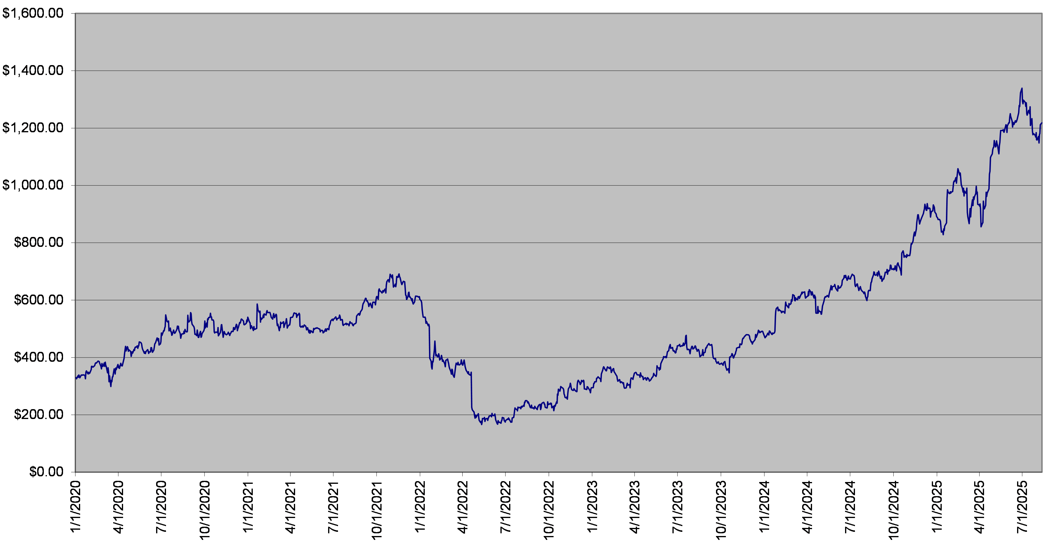 The following graph sets forth the daily closing prices of the NFLX Stock for the period from January 1, 2020 through August 11, 2025. The closing price of the NFLX Stock on August 11, 2025 was $1,218.31. We obtained the information in the graph below from Bloomberg Financial Markets without independent verification. The historical closing prices of the NFLX Stock may have been adjusted for stock splits and other corporate events. The historical performance of the NFLX Stock should not be taken as an indication of its future performance, and no assurance can be given as to the closing price of the NFLX Stock at any time, including on the calculation days.