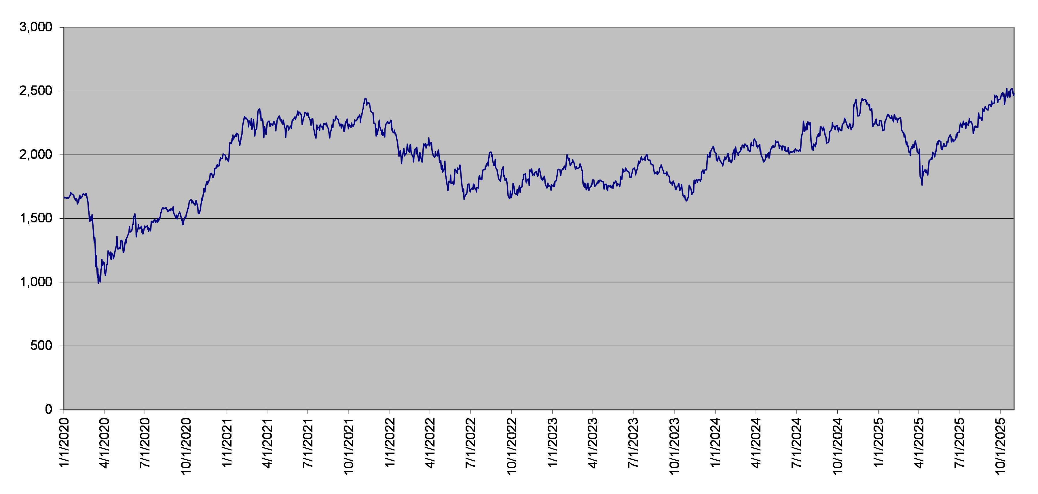 The closing level of the RTY Index on October 31, 2025 was 2,479.381. The following graph sets forth the daily closing levels of the underlier for the period noted below. We obtained the historical information presented in this document from Bloomberg Financial Markets, without independent verification. The underlier has at times experienced periods of high volatility. You should not take the historical closing levels of the underlier as an indication of its future performance, and no assurance can be given as to the closing level of the underlier at any time.