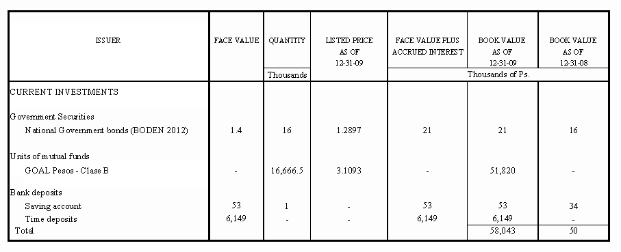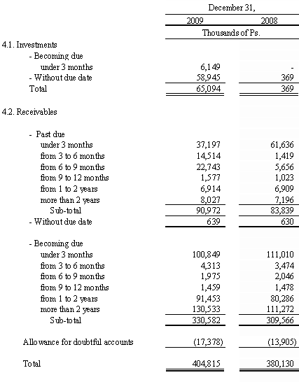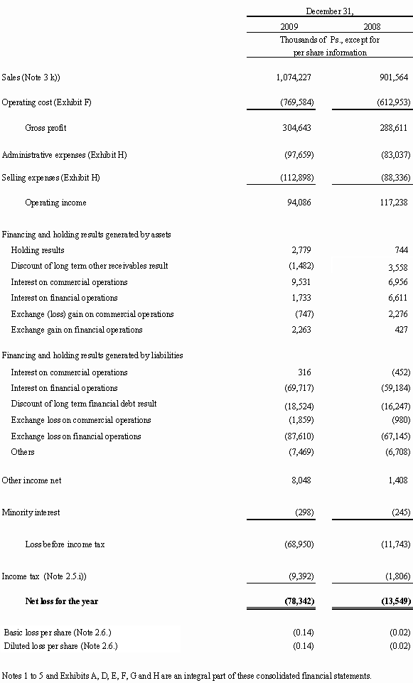 During the year ended December 31, 2009 a financial and holding loss of Ps. 170,786 thousand was recorded compared to a loss of Ps. 130,144 thousand recorded in the previous year. Such variation in financial and holding results was mainly due to interest and exchange loss registered in the year ended December 31, 2009, as a consequence of the increase in the exchange rate over financial debts.