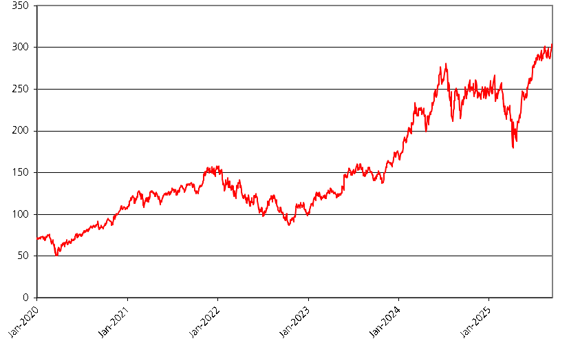 The following graph sets forth daily closing prices of the SMH Fund for the period from January 1, 2020 to September 12, 2025. The closing price on September 12, 2025 was $304.32. The historical performance of the SMH Fund should not be taken as an indication of the future performance of the SMH Fund during the term of the securities.